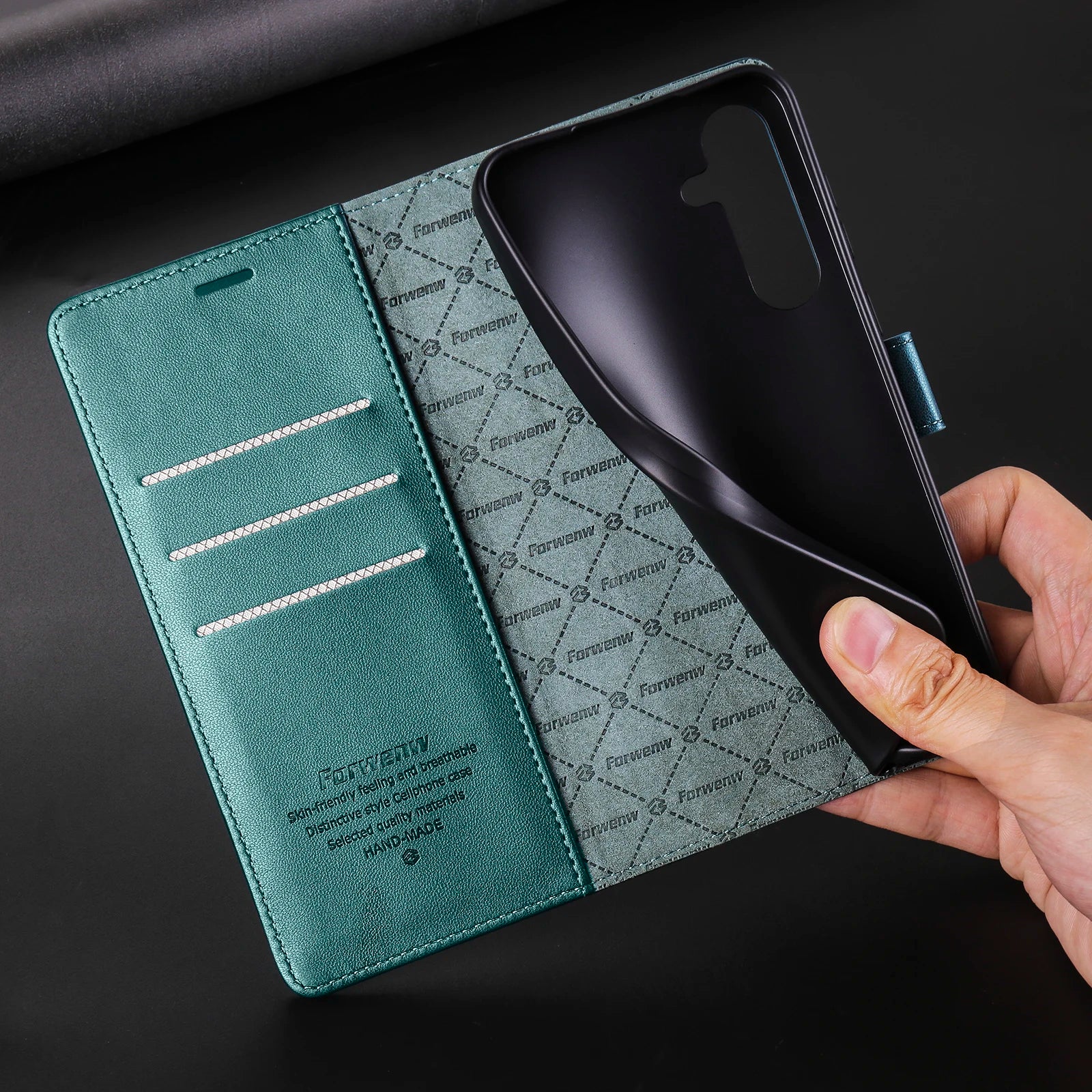 Luxury Leather Wallet Flip Case for Samsung S24 Ultra S23 Plus S22 Pro S21 FE S20 Galaxy A55 A35 A25 A15