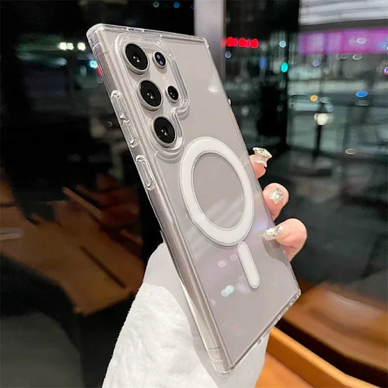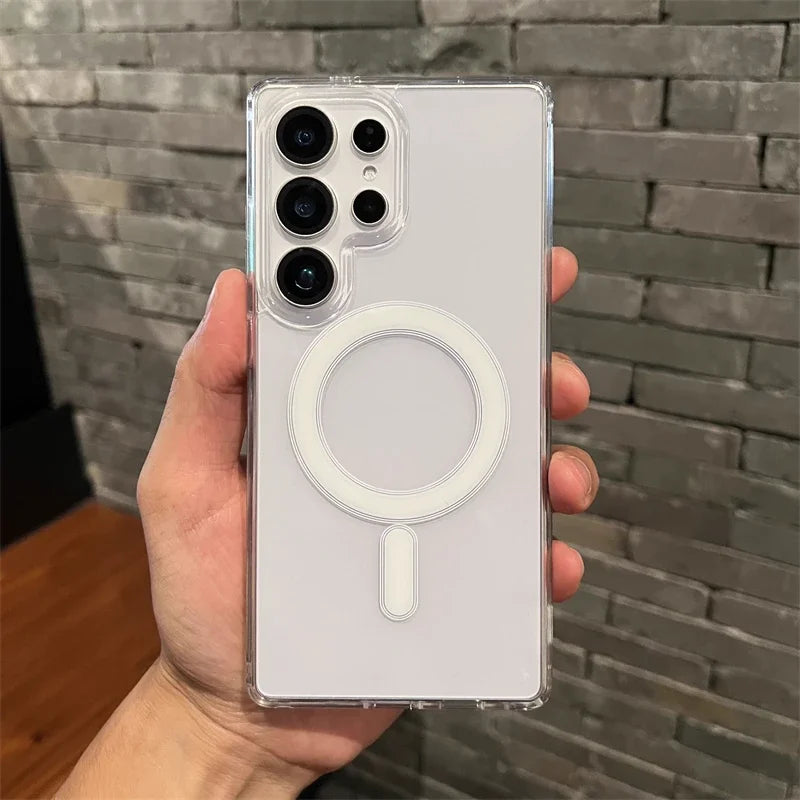 Magsafe Magnetic Charge Phone Case For Samsung Galaxy S25 Ultra S24 Plus S23 S22 S21 S20 FE Clear Wireless Charging Case Cover