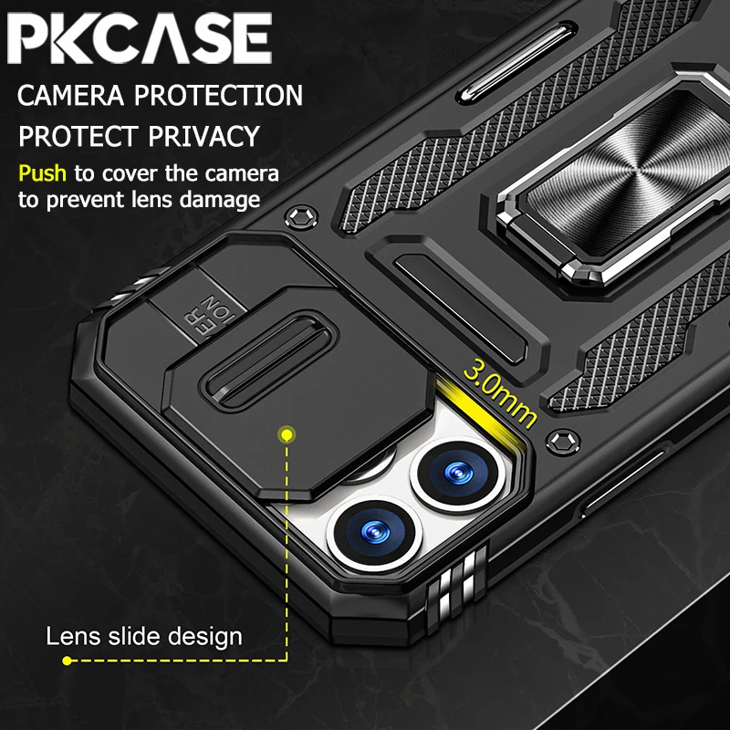 PKCASE Military Grade Protection Case For iPhone 16 15 14 Plus 13 Mini 12 11 Pro Max 7 8 Plus Slide Camera Protection Bracket Cover