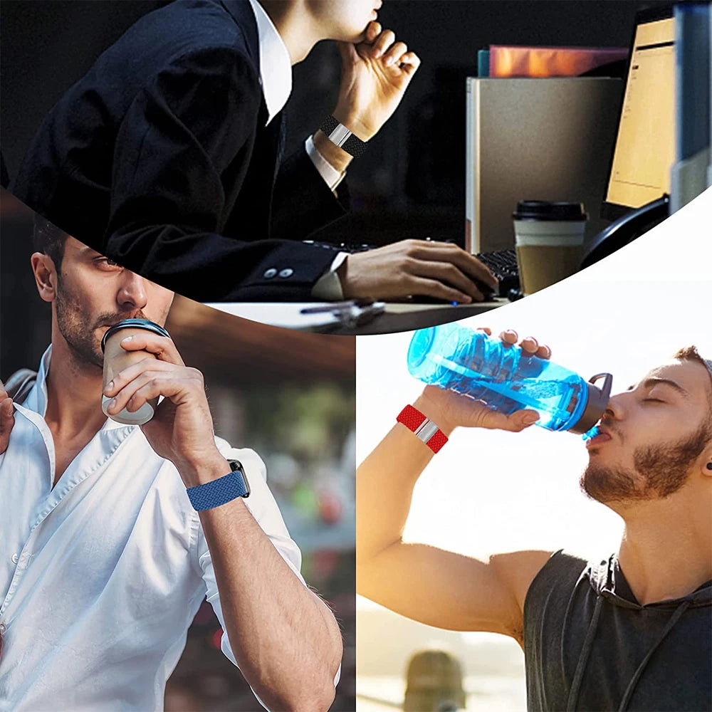 【Personalized Design】The stretchable and adjustable watch band is upgraded. Stylish stainless steel loop buckles design allows you to adjust the size of the loop strap as you wish. With the strong super stretchy elastic,easy to put it on or take it off.Suitable for wrist size 5.2"-8.5". Making it a great alternative to Silicone bands for exercise.